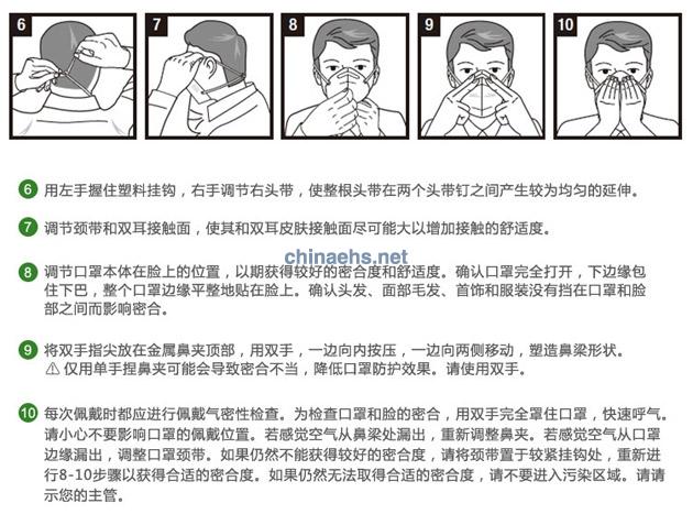 3、不能在防護(hù)口罩和臉之間墊任何東西,包括頭發(fā)、胡須、外科口罩、紗布口罩