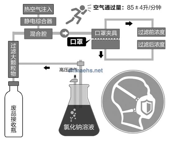 原理:用氯化鈉模擬PM2.5源。先對氯化鈉進(jìn)行按比例溶解裝入封閉腔,用高壓空氣“霧化”氯化鈉溶液,經(jīng)過濾、除濕、靜電中和后生成模擬空氣,之后讓這些空氣通過需檢定口罩。