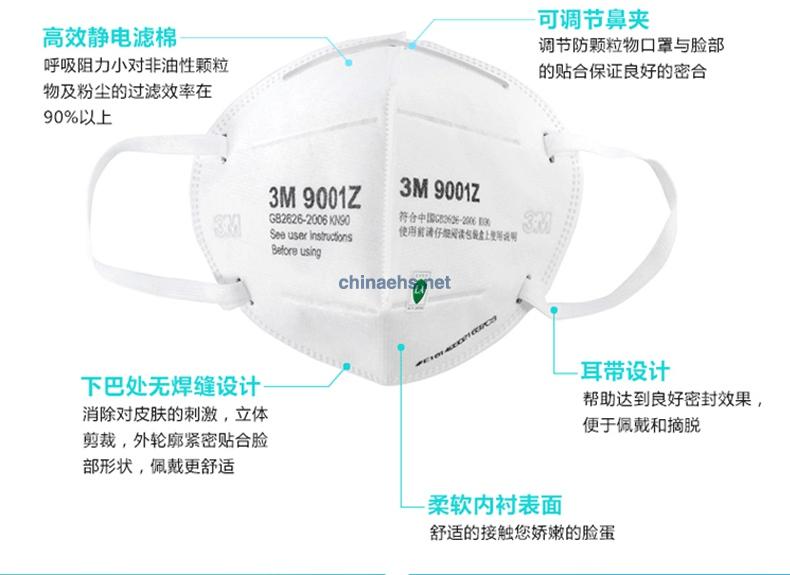 產(chǎn)品名稱:3M口罩9001Z防霧霾pm2.5 針織耳帶KN90防塵口罩