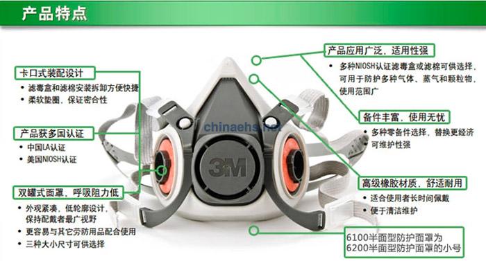 3M6100防毒面具 用于有毒、有刺激性氣味的工作場(chǎng)所;質(zhì)輕舒適,不刺激皮膚。低鼻梁,低輪廓設(shè)計(jì),提供好的視野。面具本體可清洗,配件可更換3M6100半面型防護(hù)面具。24個(gè)/箱,中號(hào)。質(zhì)輕舒適,不刺激皮膚。低鼻梁,低輪廓設(shè)計(jì),提供好的視野。面具本體可清洗,配件可更換。